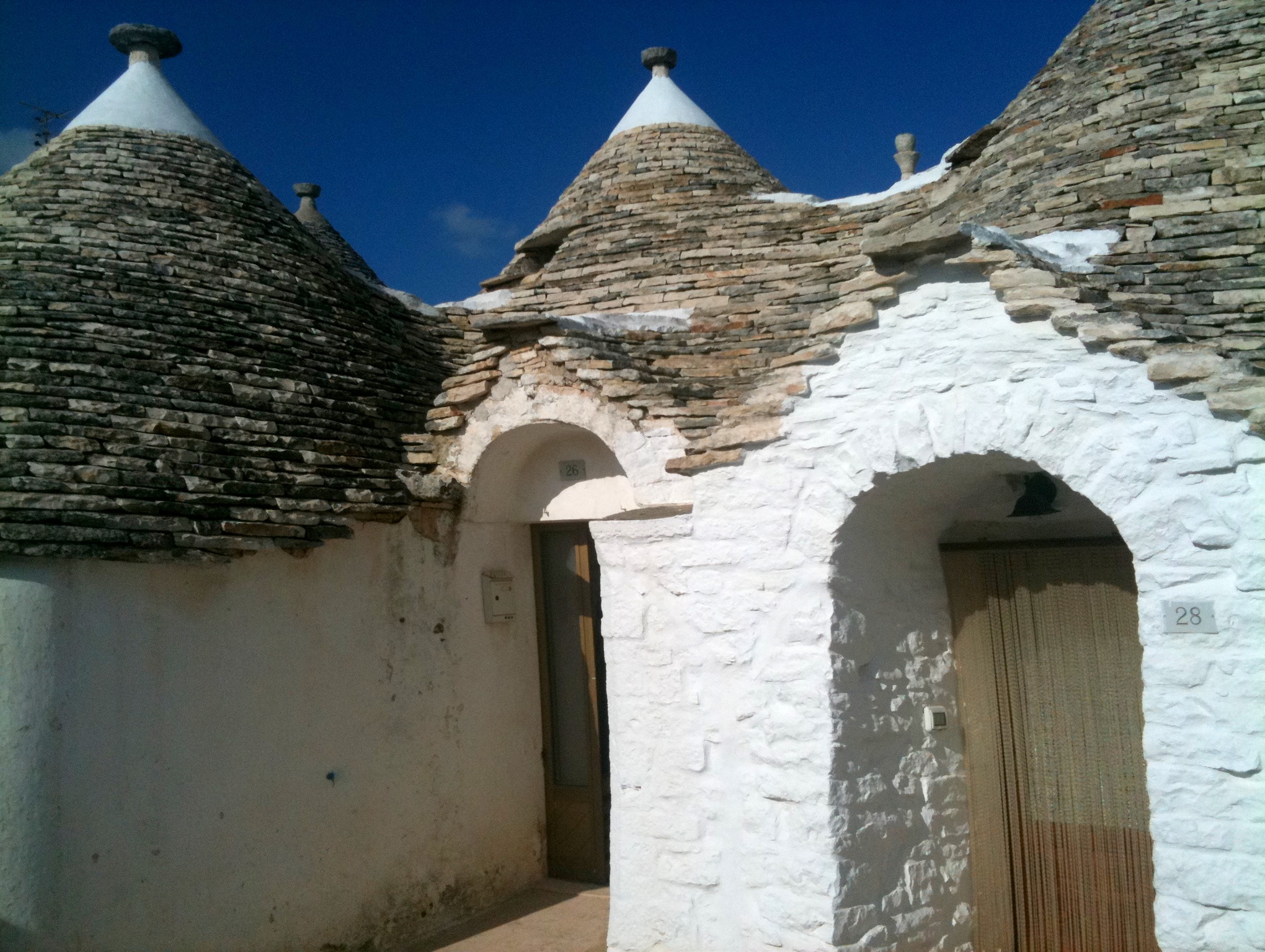 Half an hour away, atop the Murgia plain, you find several hundred peculiar cylindrical dwellings called Trulli, with cone-shaped roofs are built without mortar from slabs of limestone. They're not like teepees of the American West or like the chimney-houses of eastern Turkey; there's a separate stack at the side to vent the kitchens. You can buy your own trullo, should you want to abide by the strict historic-preservation standards, for 100 grand. A studio in one of the white-washed buildings of Ostuni, on the other hand, runs about twice that.
