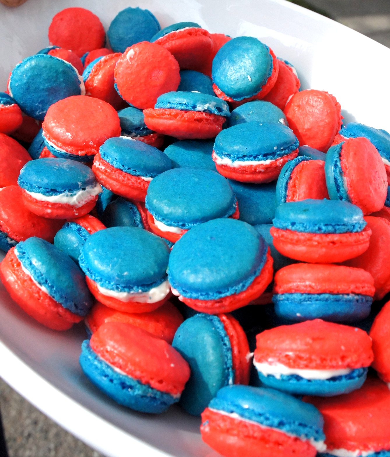 Another Bastille Day, and this one's a doozy. Every one of the many Seattle-area described here yesterday is mobbed. Tricolor macaroons at Cafe Bastille to sustain the pétanque tournament players.