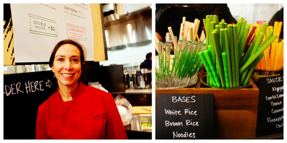 It's the first restaurant for chef Heather Nucifora; until now she's been a dietician and consultant, but she came on board for this project. Her line has five wok stations in addition to prep cooks, dishwashers and the folks taking orders at the front. When the line is out the door, it's can be a 15-minute wait, but from the time you actually place your order to the moment you get your bowl, it's less than 3 minutes.