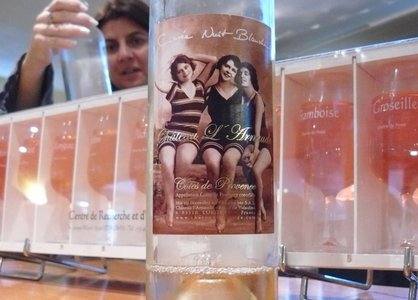 LES ARCS, Provence--These are not your deeply colored rosés, the ones that you see on the shelves of American wine shops. No, says Jean-Jacques Benetti, director of the regional showcase for Côtes de Provence wines, the new rosés are pale, pale, pale. And some of the labels are kinda sexy, too. Rosés of one night, he calls them, but it's a night of maceration, not what you think. (It's said that there's another kind of rosé, the one that gives you a suntan: you drink until you pass out on the beach.) Anyway, this one, with the girls in old bathing suits on the label, is from Château l'Arnaude, 80 percent grenache, 20 percent cinsault, and is called, ahem, Sleepless Night.
